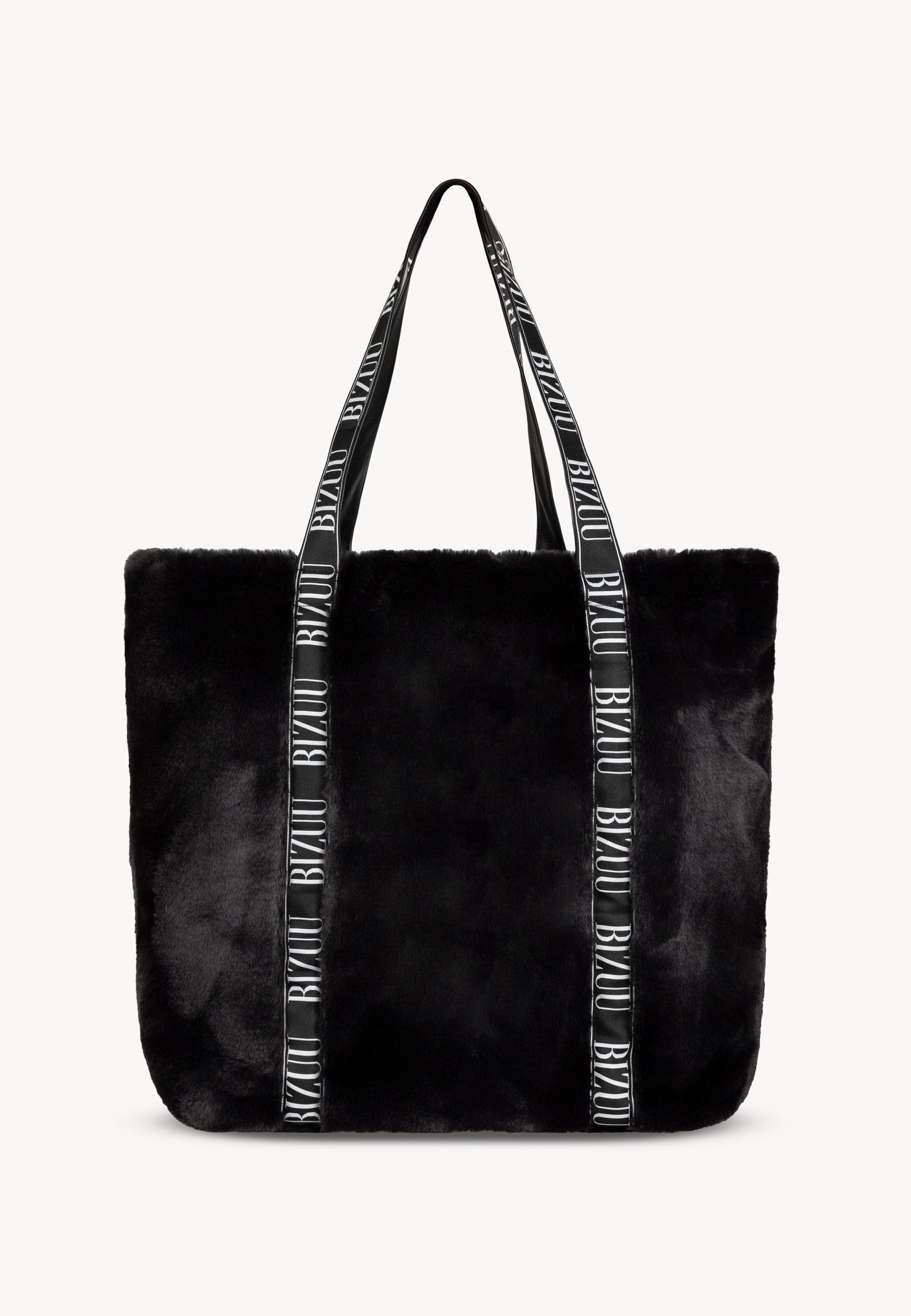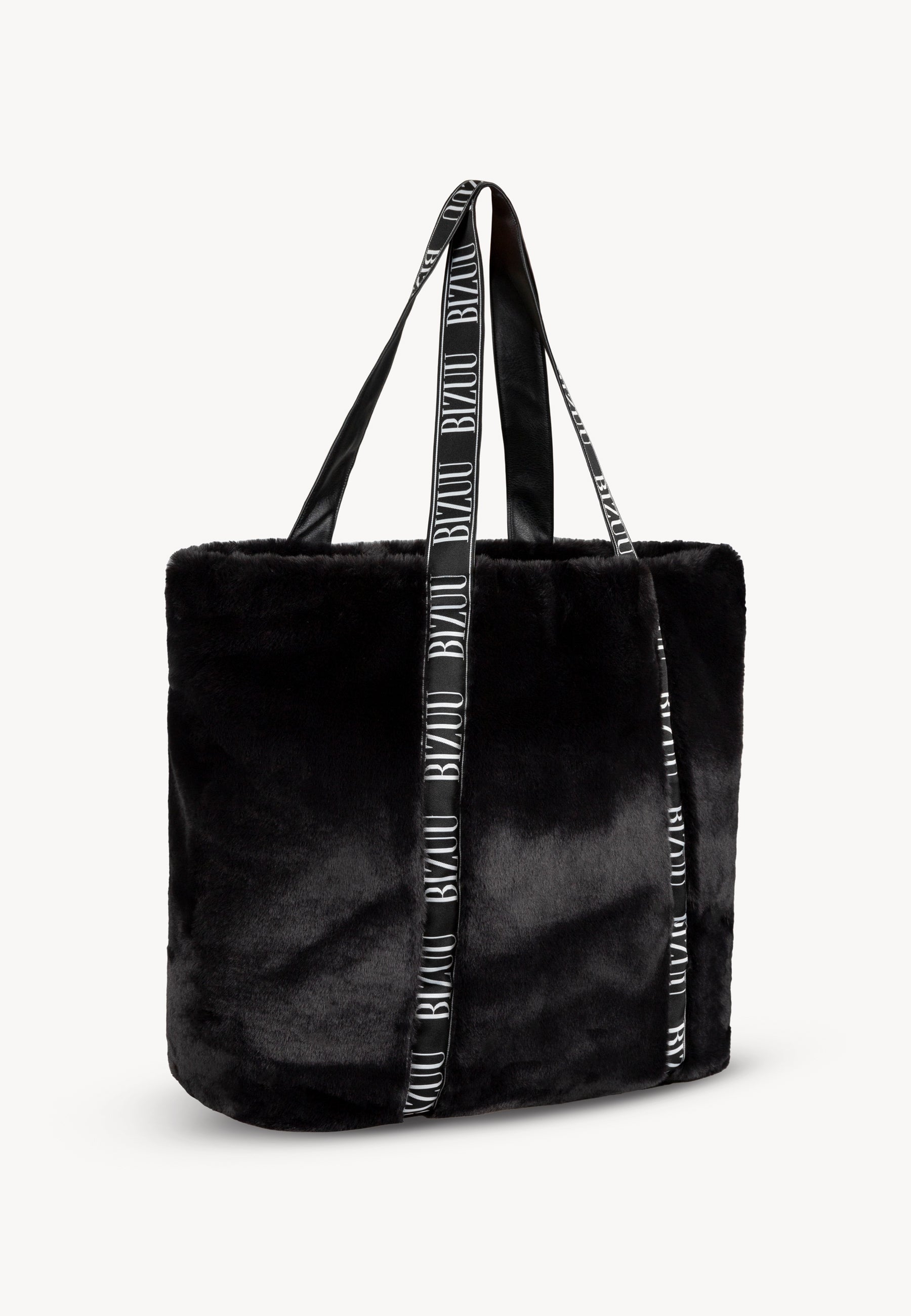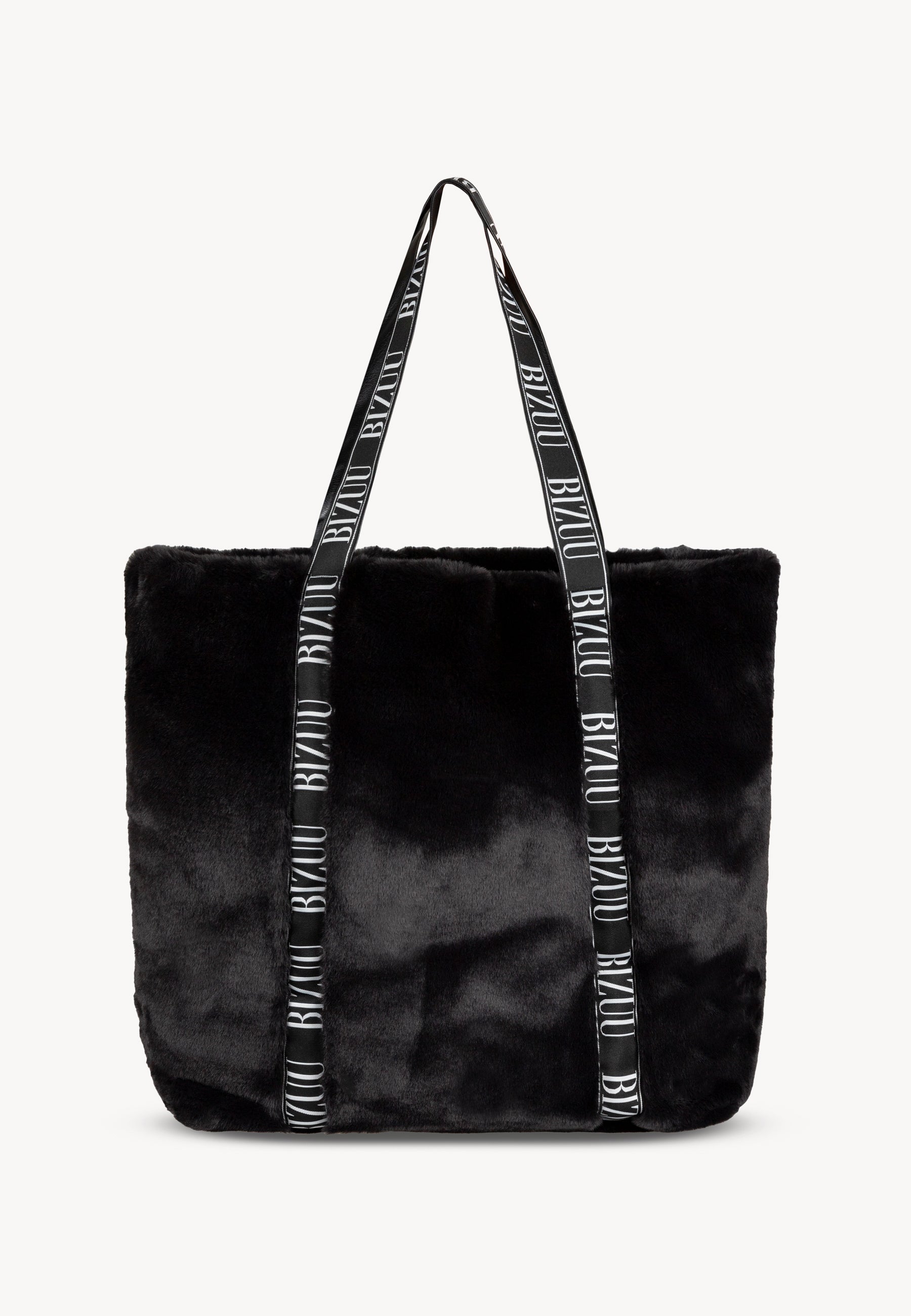 Black faux fur bag FUZZY with branded tape.