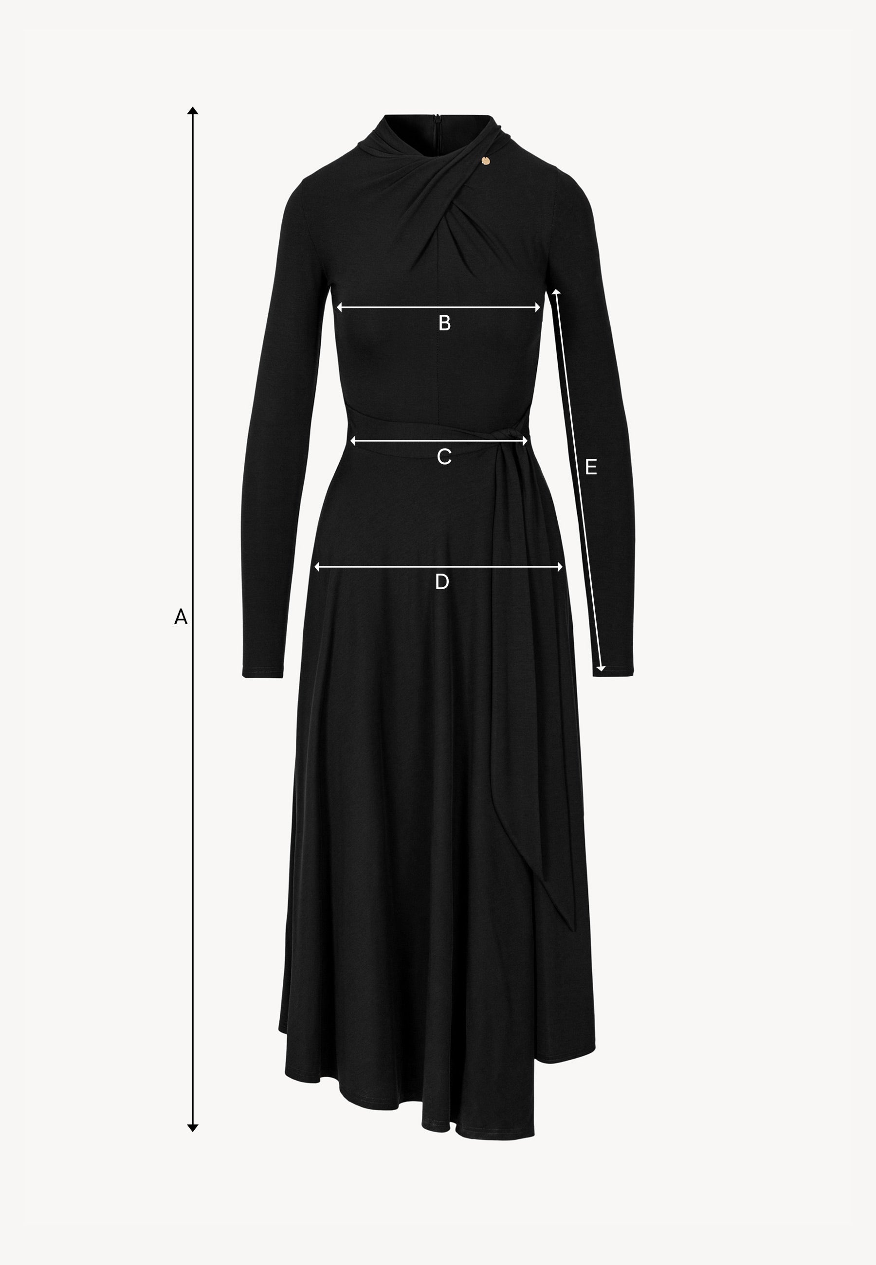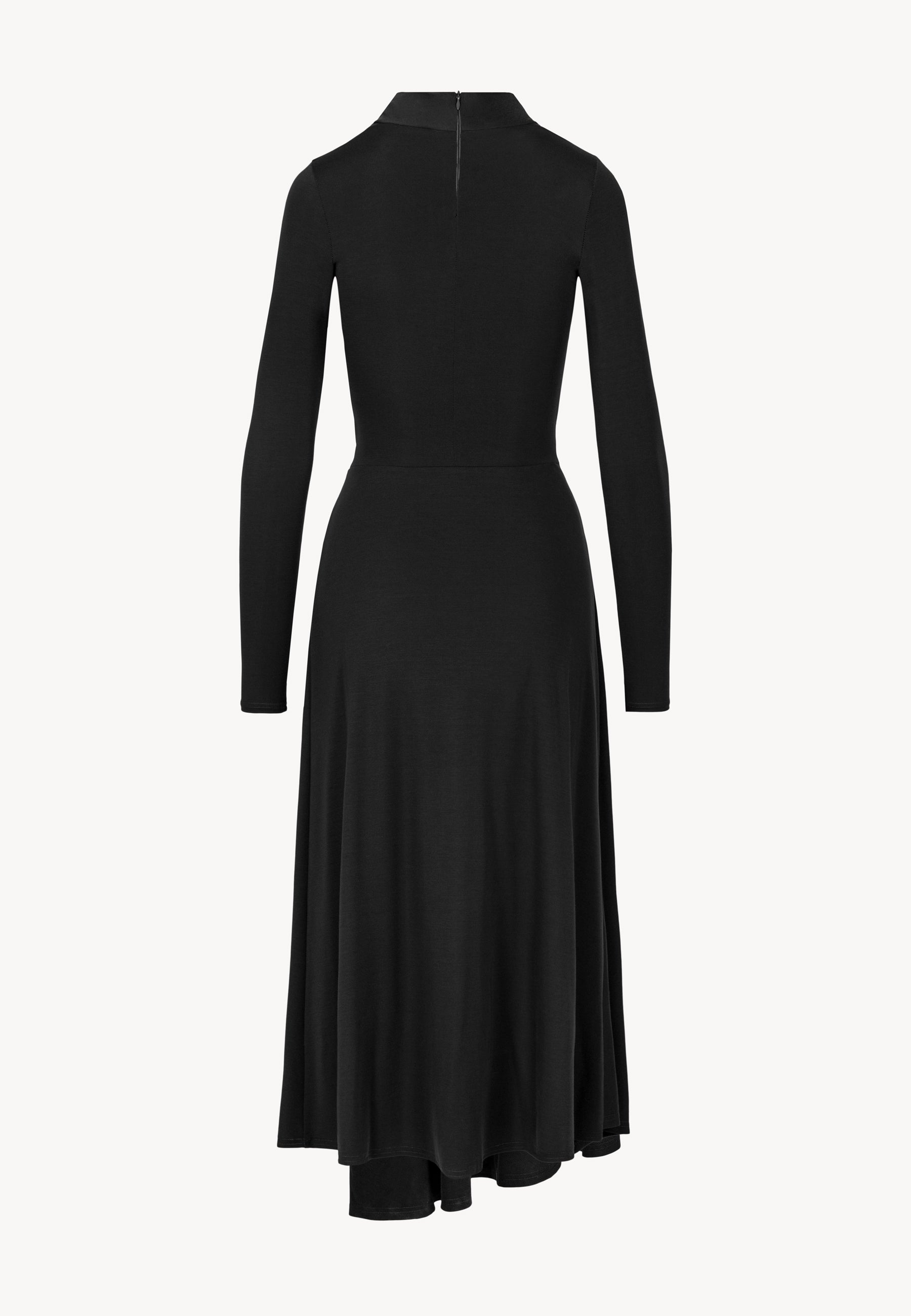 The ROTTA dress is the essence of elegance in a modern form. Made from black elastic knit fabric, it fits the body perfectly, highlighting the silhouette while ensuring comfort. The decorative twist at the neckline adds originality, and the subtle golden BIZUU medallion serves as a delicate, jewelry-like accent. The wrap-style waist effect and asymmetrical hem create a graceful flow and elongate the figure. With its ankle-length cut, this dress is perfect for both special occasions and sophisticated everyday outfits.