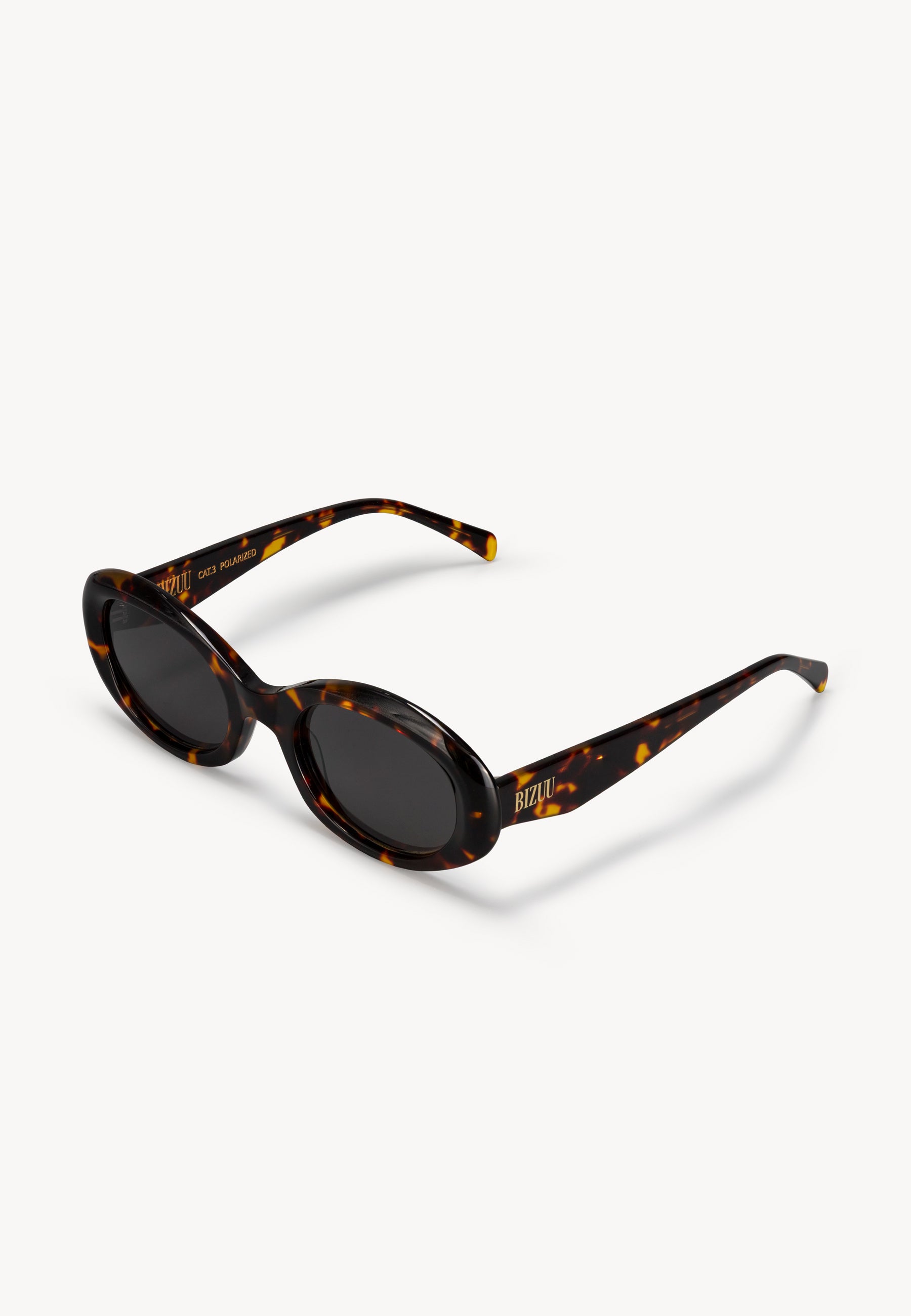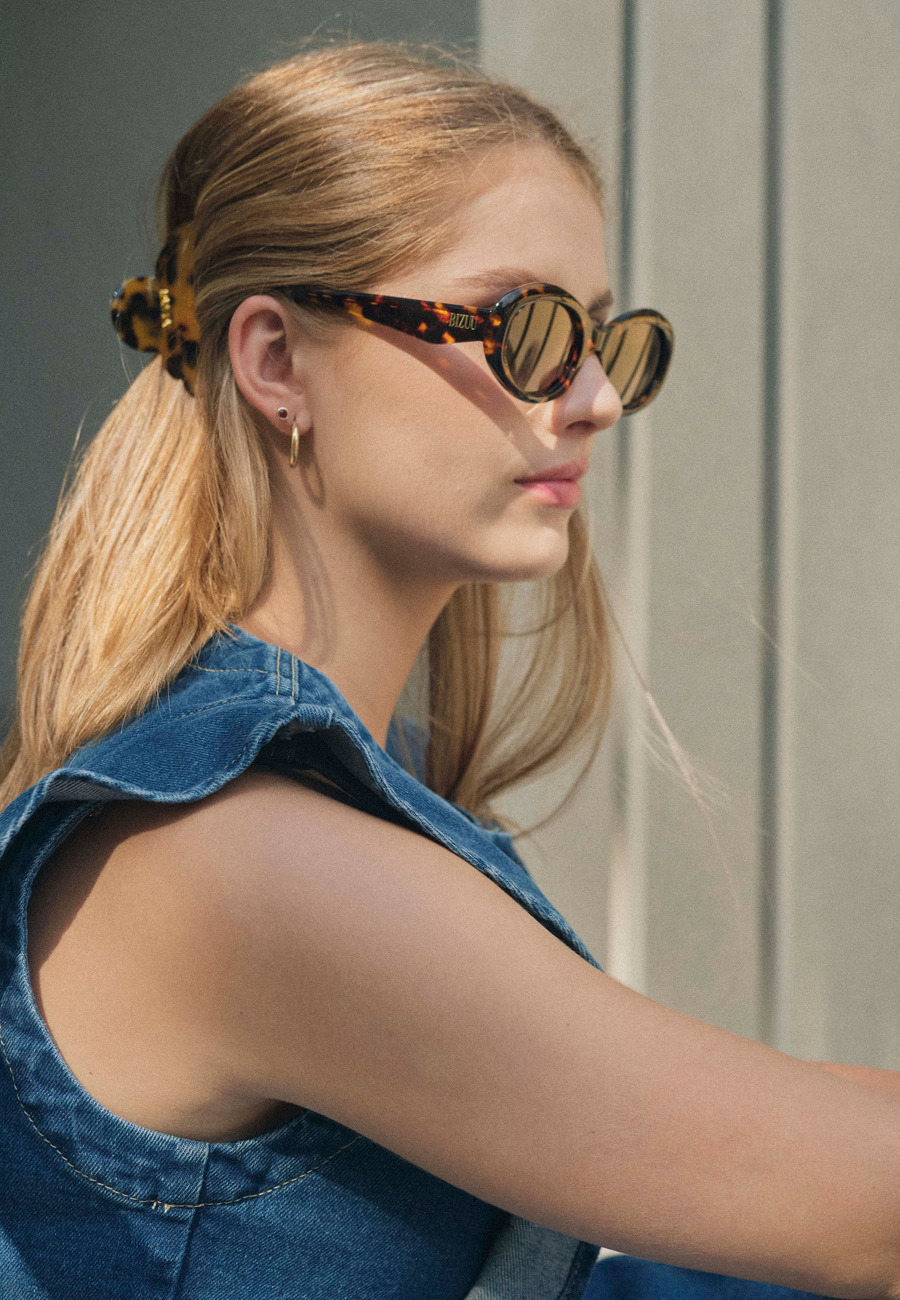 ENNA eyeglasses in brown are a classic addition to any style. Their round frame with a tortoiseshell finish gives them a timeless touch. The dark lenses effectively protect the eyes from the sun, and the universal shape perfectly suits different types of beauty. The model is sold with an elegant, logoed case and cleaning cloth.