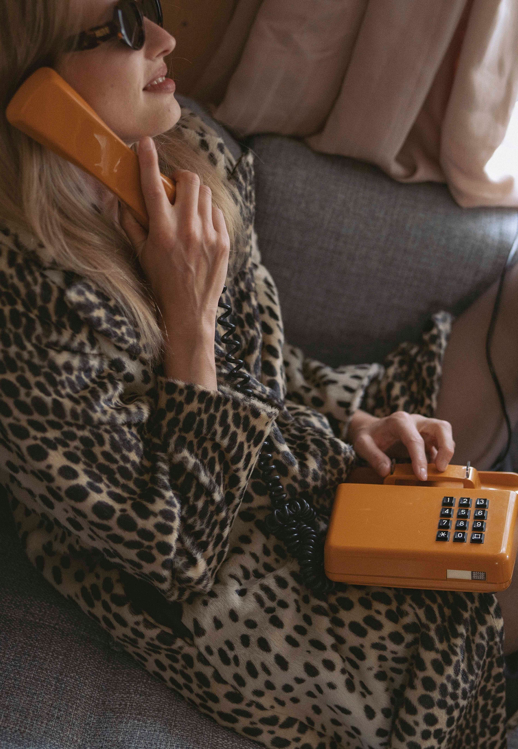 - Long coat made of faux fur material