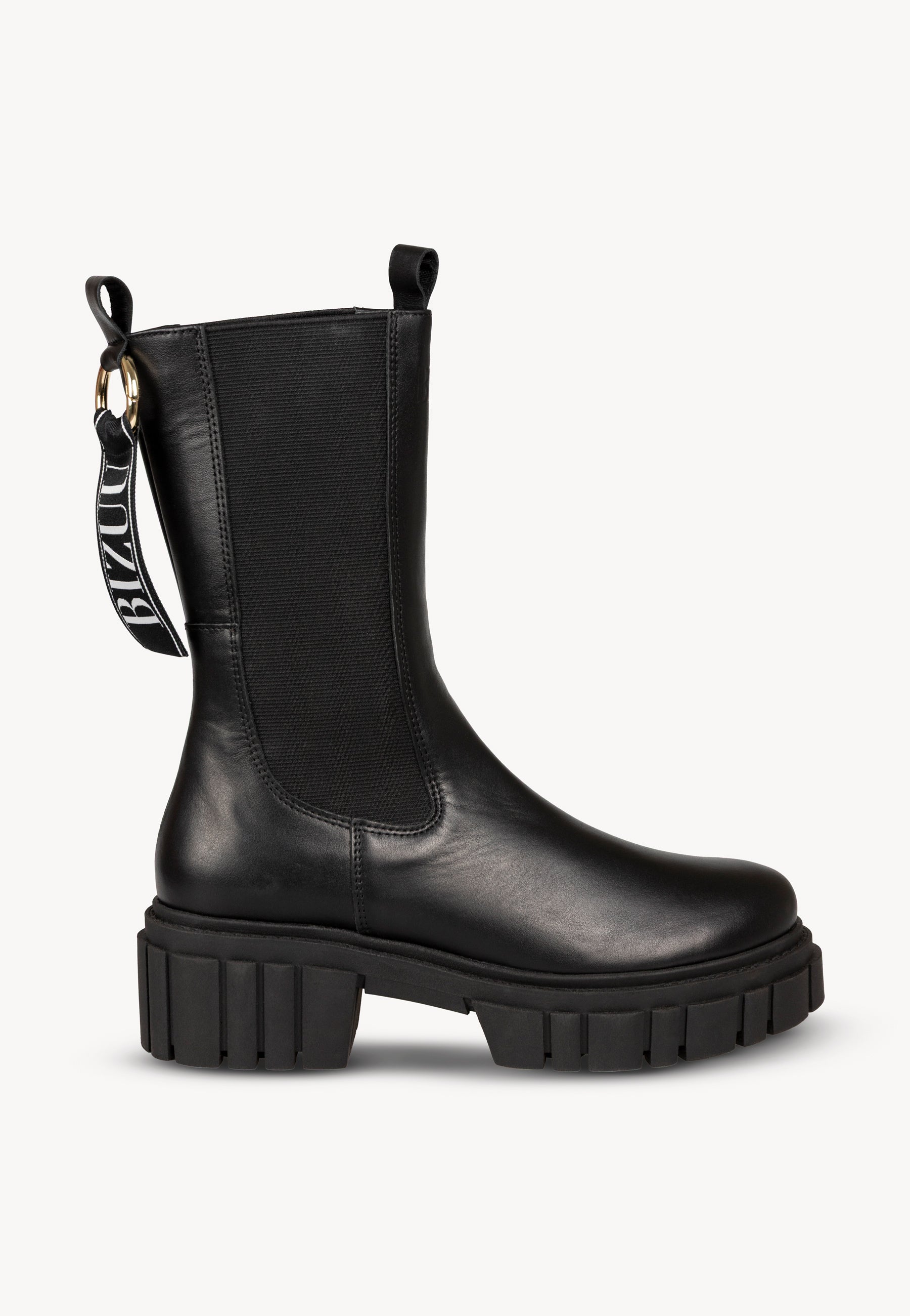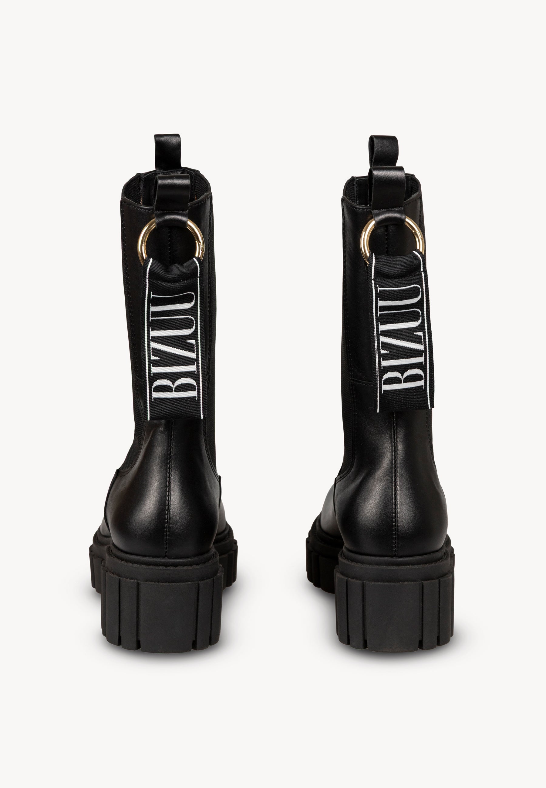 TORIDE ankle boots in black are a bold and modern model that will emphasize the character of any outfit. Thanks to the thick sole with a tractor tread, they provide stability and comfort, while giving the boots a fashionable, streetwear character. Elastic inserts on the sides make them quick and comfortable to put on. The BIZUU logo detail adds uniqueness, and the practical handles at the back make them even more functional. These boots are designed for women who value expressive design and comfort in everyday use.