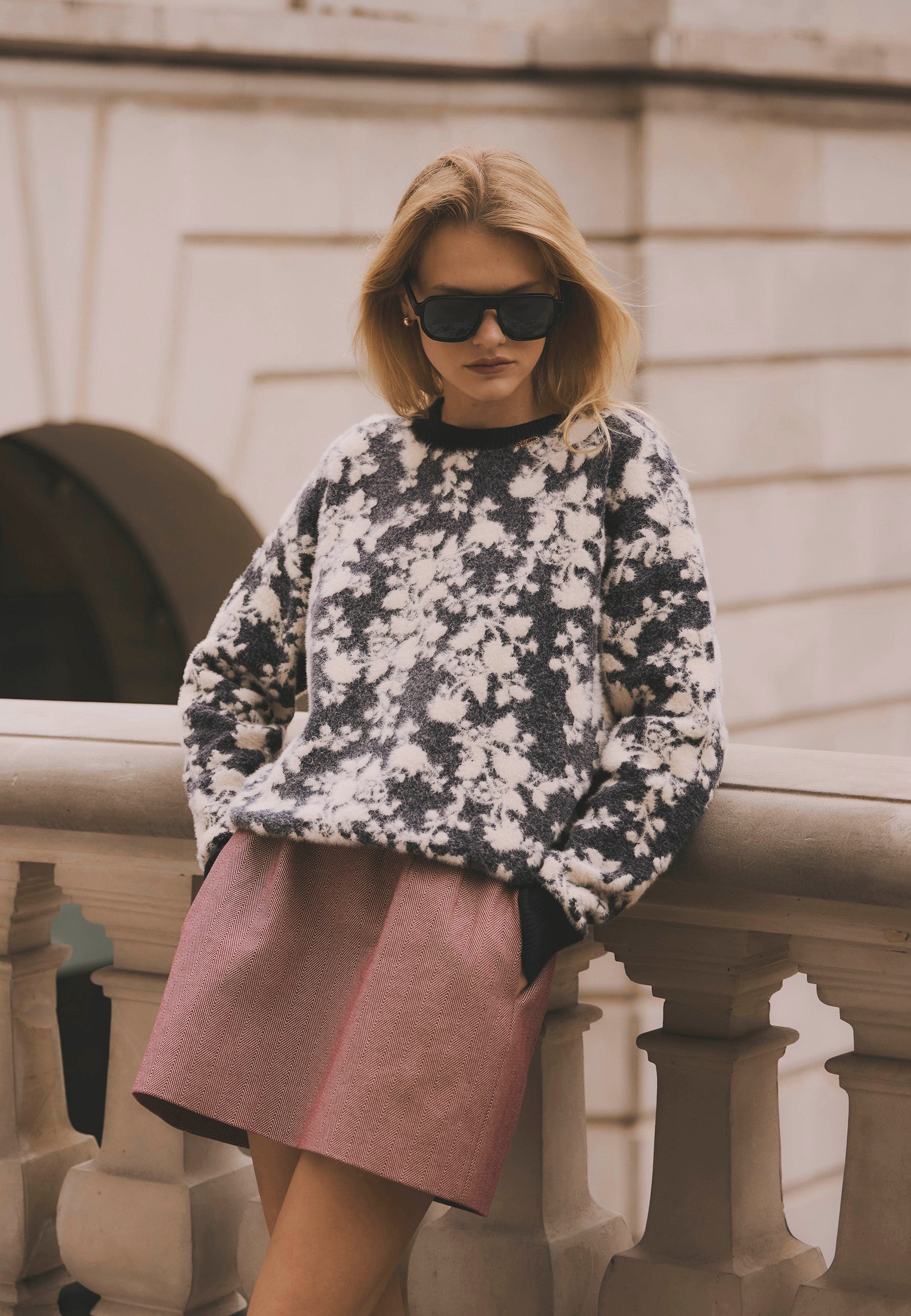 MENTON cream wool sweater with signature print MENTON cream wool sweater with signature print