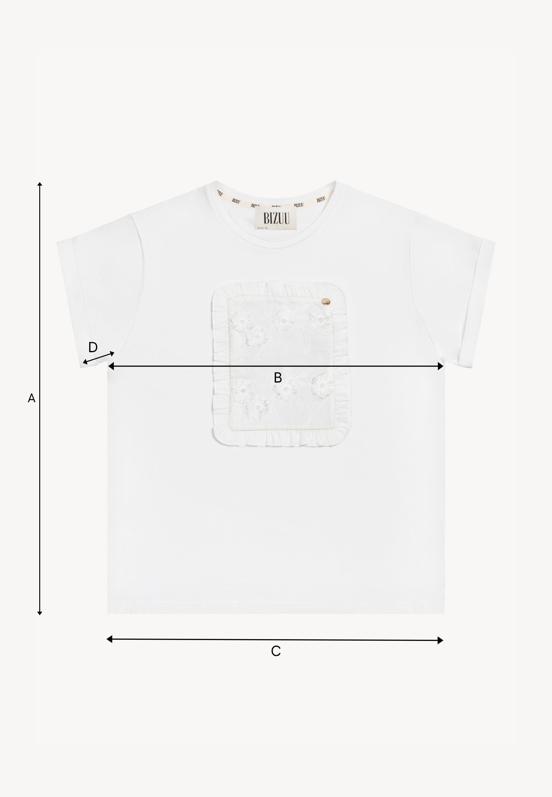 The cream MIRADO T-shirt is a classic model with a round neckline and rolled-up cuffs at the sleeves. The unique decoration is embroidery with raised flowers, adding delicacy and elegance. An ideal choice for women who appreciate subtle details and wearing comfort.