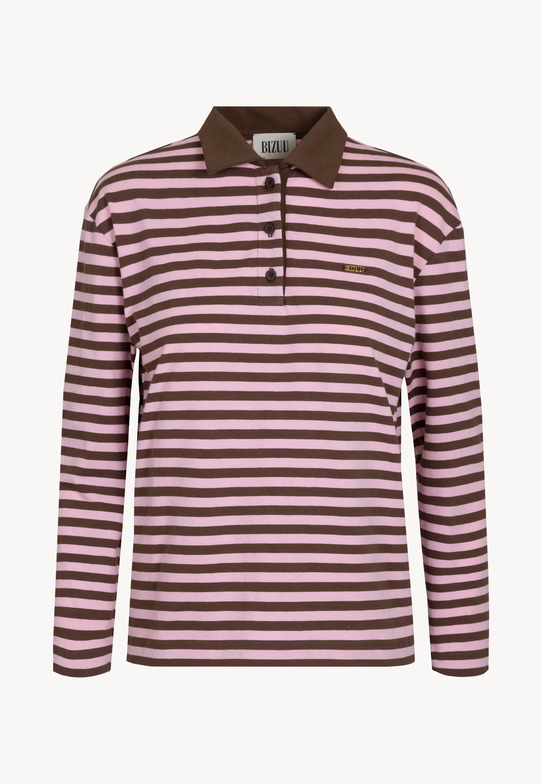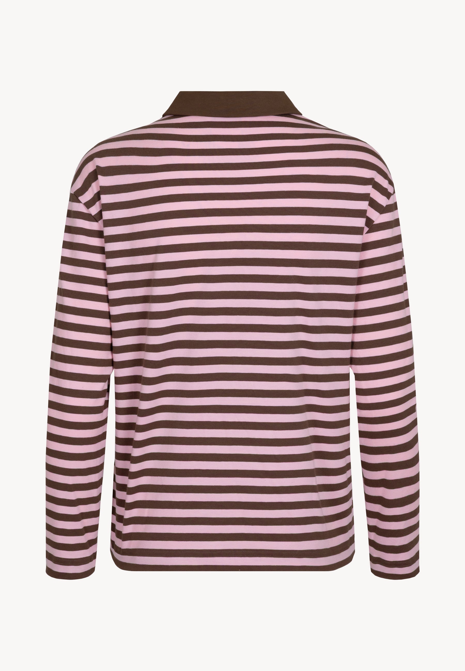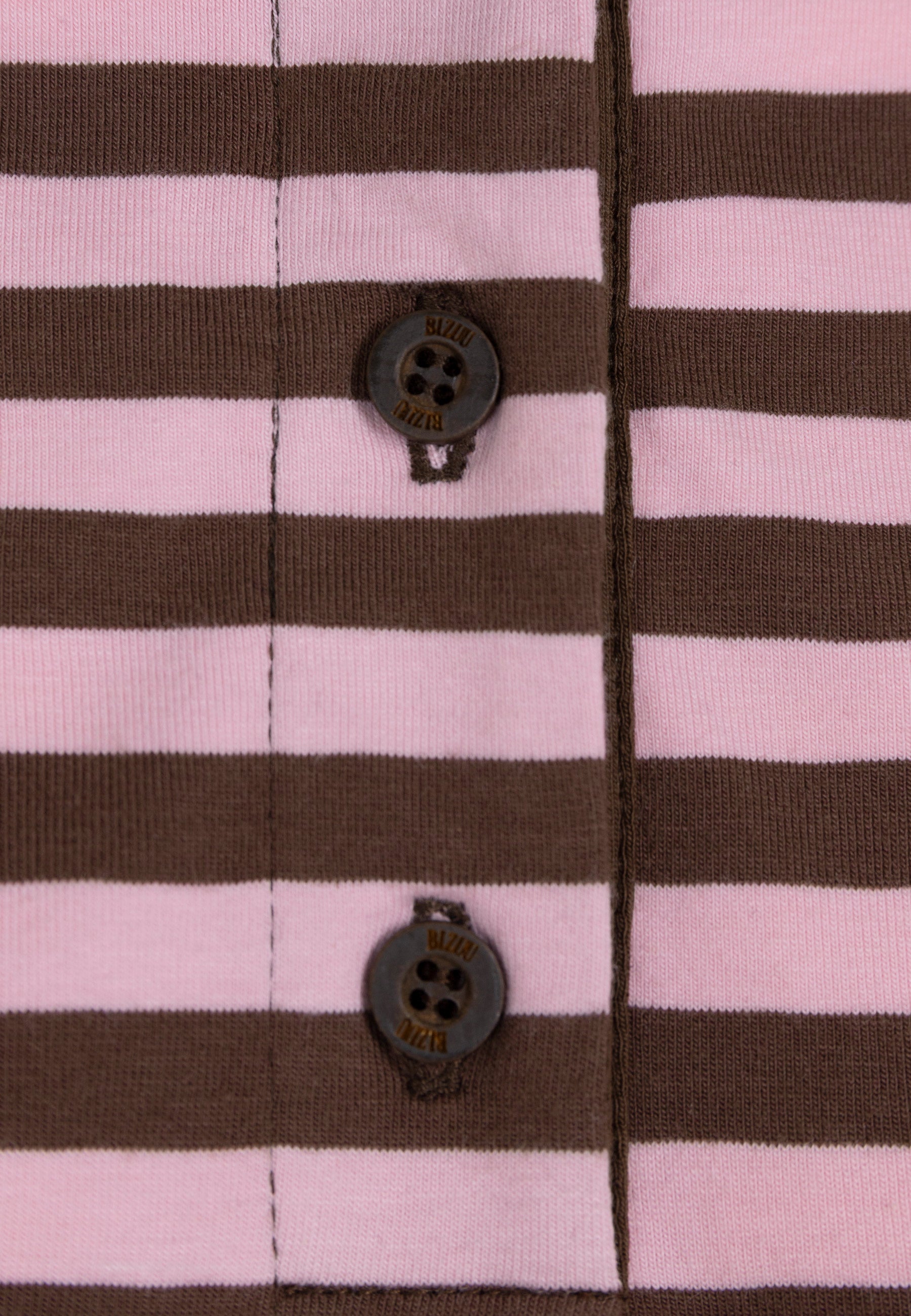 The Lightweight RAYA sweatshirt with pink and brown stripes is an excellent choice for women who appreciate comfort and style. Made of high-quality cotton and fastened with logo buttons, the sweatshirt has a polo collar and a dropped shoulder line, which gives it a unique character. The loose fit of the sleeves provides additional comfort when worn. An ideal everyday choice for women who appreciate comfort and fashionable design.