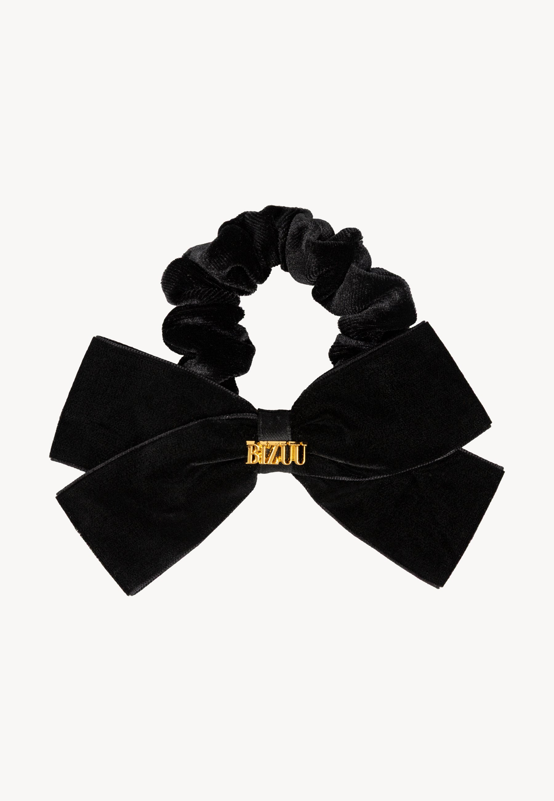 The VELOURA scrunchie is a sophisticated hair accessory in classic black. Its velvet finish gives it a luxurious look, while the delicate bow and gold BIZUU logo add a touch of elegance and refinement. Both chic and functional, the VELOURA scrunchie is the perfect detail to elevate any hairstyle.